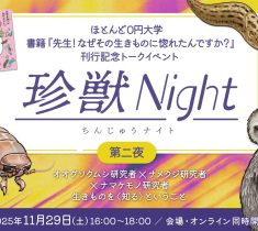 ほとゼロによるトークイベント「珍獣Night 第二夜」11月29日開催! 生きものを〈知る〉をテーマに、3人の研究者がゆるっと語り合う
