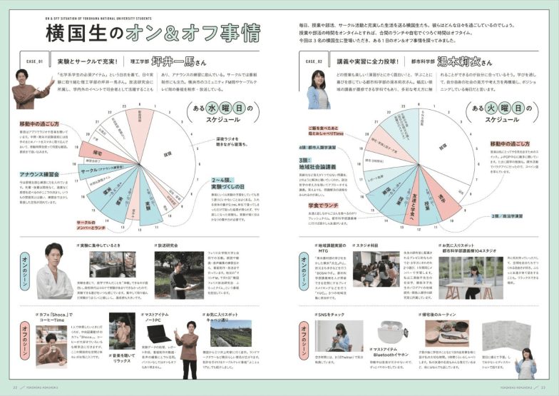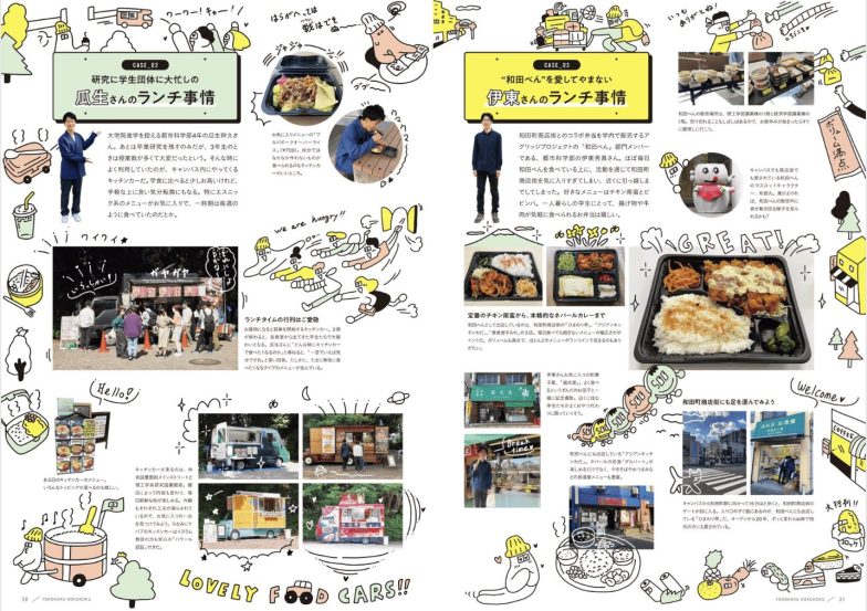 後半は「横国生のオン&オフ事情」や「横国生のランチ事情」など、学生の日常にふれられるページも。学生の方々が楽しくキャンパスライフを送っている様子が感じ取れて、読み応え抜群です。