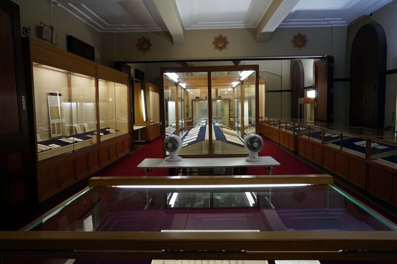 天理図書館では、年1回、毎年10~11月頃に、テーマに合わせた所蔵資料を展示する記念展も開催しています。訪れたのは2025年の展示期間終了後でしたが、展示室もご案内いただきました。