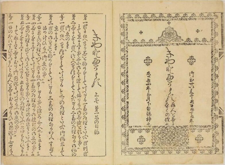 『狂文狂歌老萊子』(四方山人編/天明4(1784)年)。『べらぼう』でも大流行している様子が描かれていた、狂歌(しゃれや風刺を詠んだ和歌)の歌集。出版元として「耕書堂」「蔦屋重三郎」と記されています