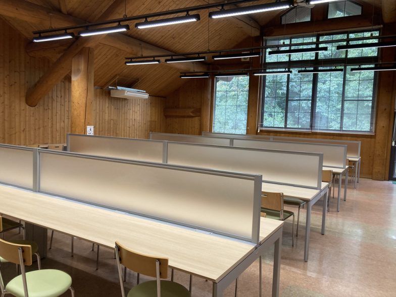 「もりもり食堂(櫻月館)」があるのは、キャンパスの中でも奥まった場所。入口すぐの「つながる館」を左手にまっすぐ進みます。通路の脇にも木々がたくさん植えられていて、気分はまるで森林浴。