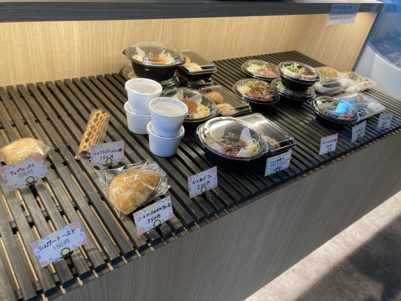 コーヒーやアイスクリームといったカフェメニューの他、パンやお弁当などの軽食も購入できます