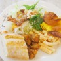 そして、茨木童子を横目にずんずん進むと、メインステージである空のプラザと、さまざまな飲食店のブースが並ぶ会場の中心地。大学祭の場合、飲食店のブースは学生たちが運営するのだが、今回は地域交流フェスタ。立命館が関係するブースともに、茨木市界隈の人気店が多数出店しており、どれも美味しそうで目移りしてしまう。