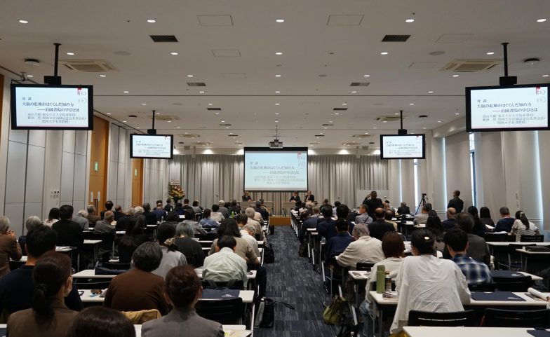 シンポジウムは関西大学学長の高橋智幸先生の挨拶で幕を開け、泊園書院は関西大学の学問的なルーツの一つであり、「今の大学の学びや人材育成に示唆を与えてくれる」と紹介しました。同大に設置された泊園記念会の会長でもある文学部教授、吾妻重二先生は、「泊園書院は大阪ナンバーワンの学問所であり、関西大学と深いつながりがあります。どんな学びがあったか、多くの人に知ってほしい」と語ります。ここでも、「大阪ナンバーワンの学問所」という言葉が聞かれました。その理由が明らかになったのは、続いて行われた泊園書院を紹介するビデオ上映でのこと。
