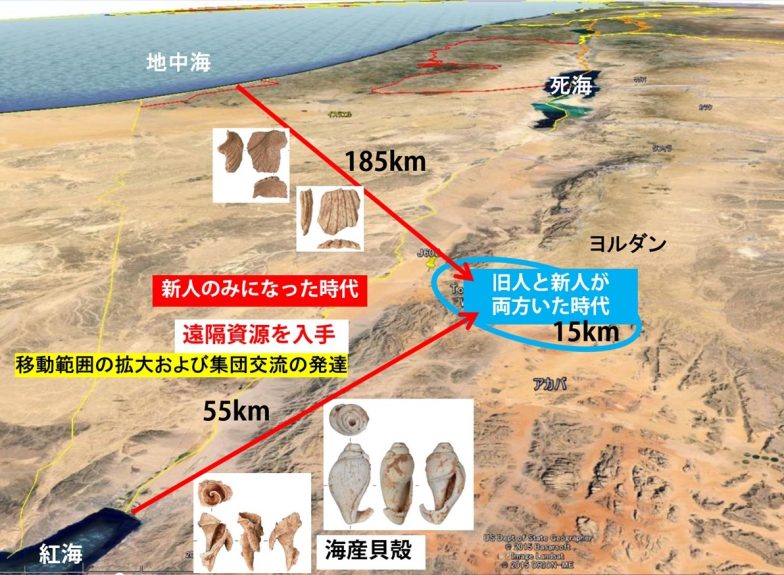 では、他にどのようなイノベーションがあったのでしょうか。実は、砂漠の遺跡からは海の貝殻とそれを加工したビーズも見つかっているそうです。小さな貝なので食料として運ばれたものではないと思われ、旧人と新人が両方いた時代には出てきていません。新人のみが存続した時代に遠隔資源を入手しているのです。