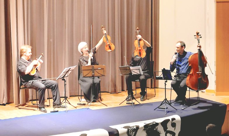 弦楽四重奏の楽器編成や、18世紀ハイドンの時代以来の歴史についてのミニレクチャーも