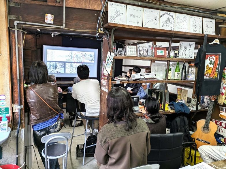 「仏敵と見なされ、負のイメージを持たれていたイタチが四天王寺の建立を助けたとされる伝承は、まだまだ研究がなされるべき」と語った俵さんには、率直に「確かにおもしろいですね」という感想が。すると「そもそもかつての日本においては、イタチとタヌキは同じ動物として扱われてきた」とのトリビアも飛び出ました。このように、よい意味で予測不能な方向に話が転ぶのがイタチバーのおもしろさ。学識経験者と聴講者がはっきり分かれる講座とは異なり、双方向で情報のやりとりができる和やかな場がそこにありました。